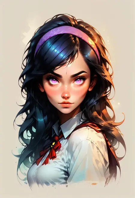 프롬프트 활성화: 1girl, violetparr (/The Incredibles)/,(ultra HD quality details), black hair, long hair, hairband, purple eyes,