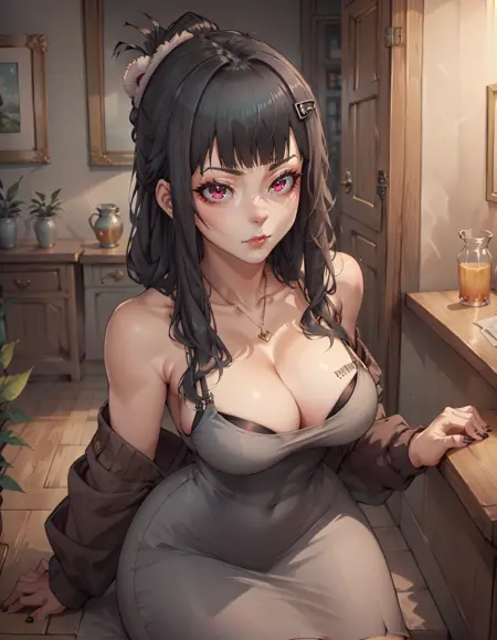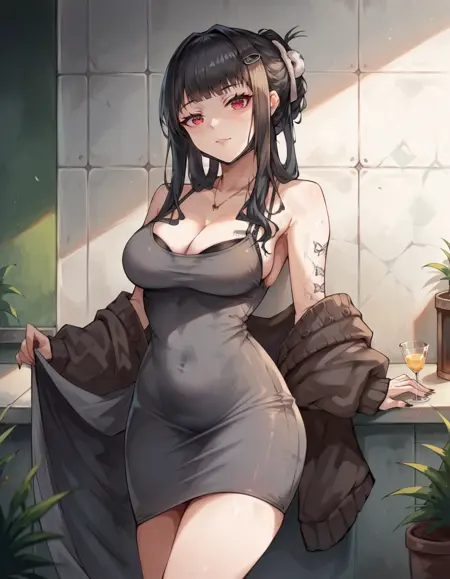 dress, black hair, cleavage - 몇 가지 부분을 강조하기 위해
