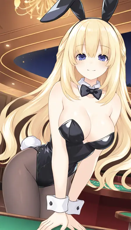 外見: Vert \(neptunia)\、金髪、青い目、長い髪、フレンチブレード、サイドロックス、中程度の胸