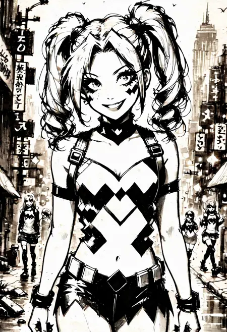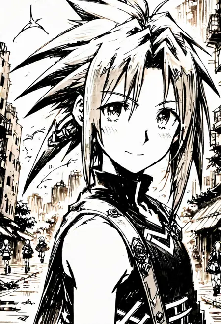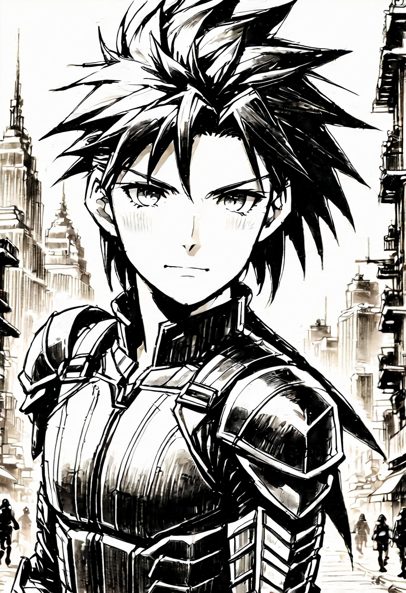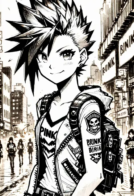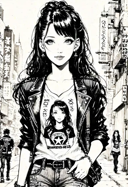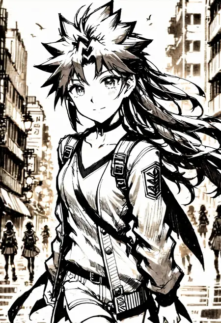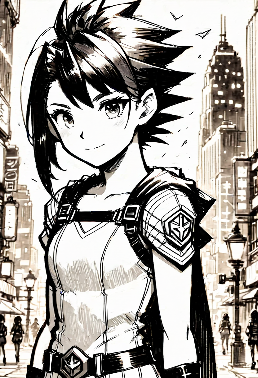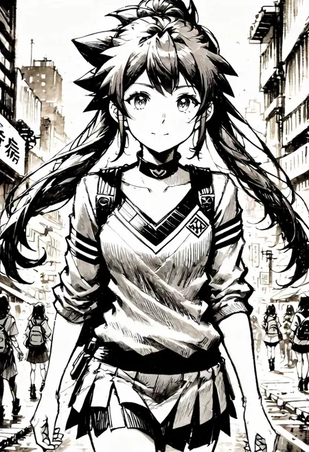 MessyManga, 자세한 만화 연필 스케치 (주제), 전신 뷰, 도시 배경