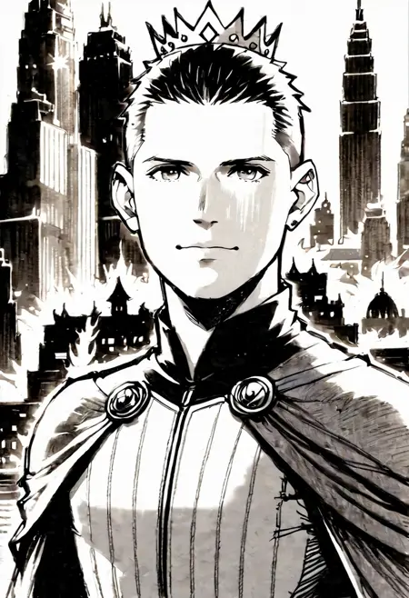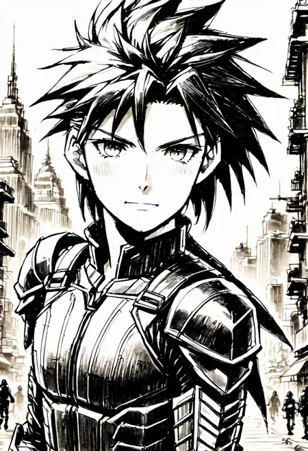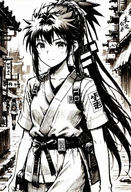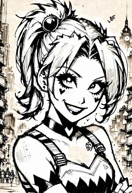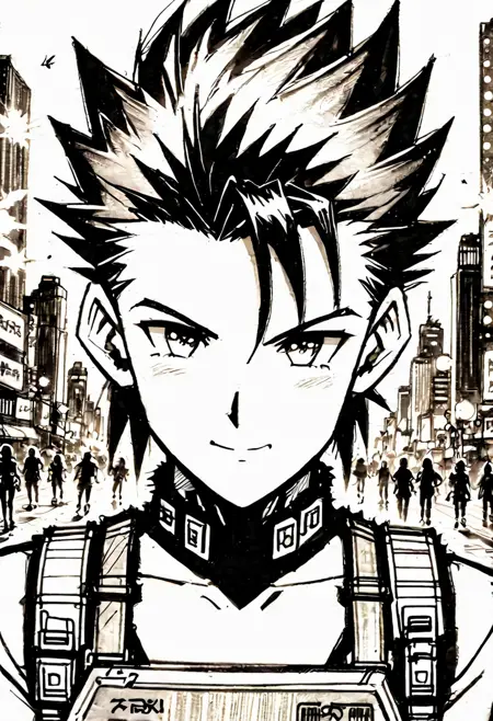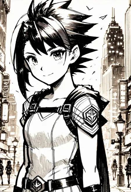 MessyManga, 详细漫画风格铅笔草图,(主体),全身视角,城市背景