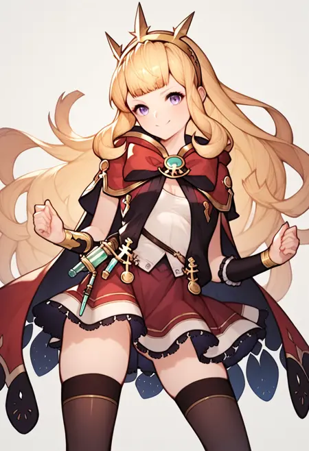 1girl, yuisis_\(granblue_fantasy\), erune, blonde_hair, animal_ears, long_hair, braid, black_gloves, very_long_hair, red_eyes, purple_eyes, black_thighhighs