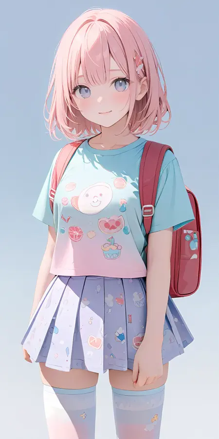 jyojifuku, print shirt, skirt, thighhighs,pastel color clothes