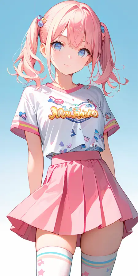 jyojifuku, print shirt, skirt, thighhighs,pastel color clothes
