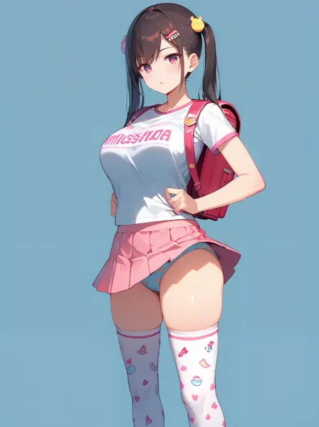 jyojifuku, print clothes,pastel color clothes, shirt, skirt, thighhighs