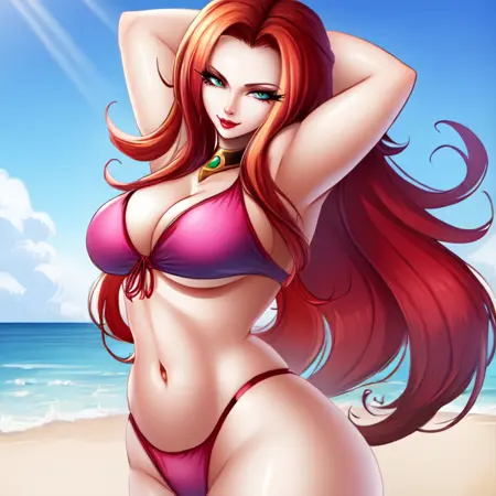 Training data contains some images of the christmas and beach outfits. So the lora can generate her in those to some degree. All in all, due to Ferham's outfit having a lot of detail the lora isn't perfect. You can try to prompt for more specific details, but don't be surprised if the armor isn't 100% identical to the official one. Adding "red armor" in addition to "pink armor" can also help.