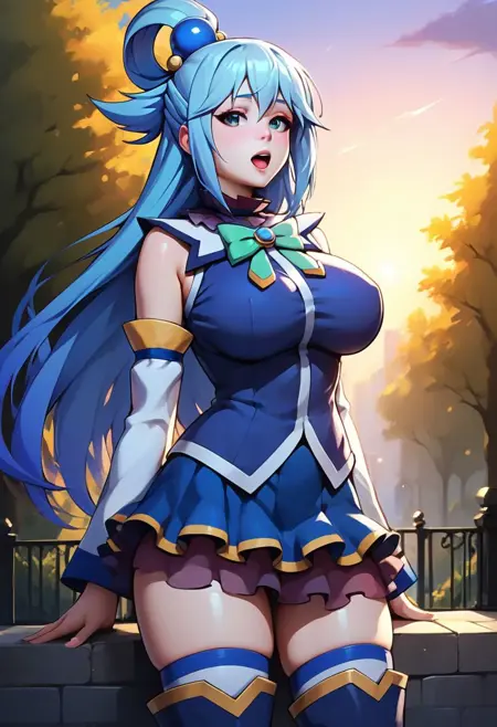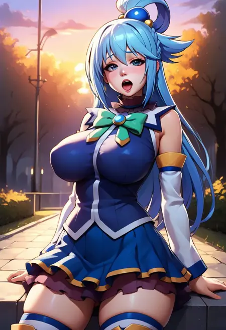 프롬프트 활성화: Aqua(/Konosuba)/,(ultra HD quality details), pale skin, blue eyes, blue hair, long hair, hair ornament, hair rings, single hair ring