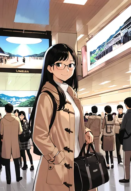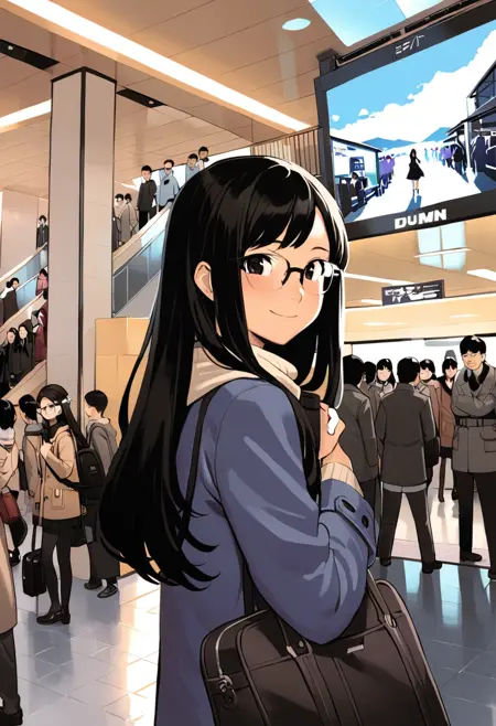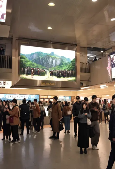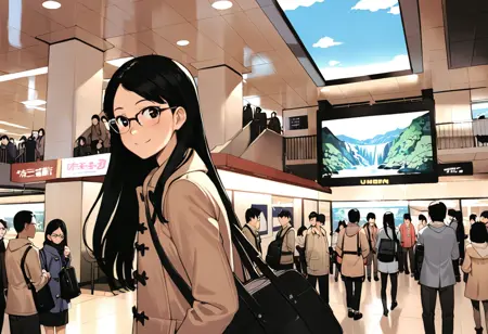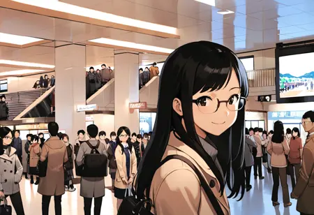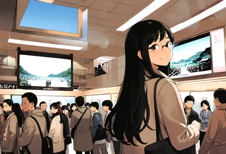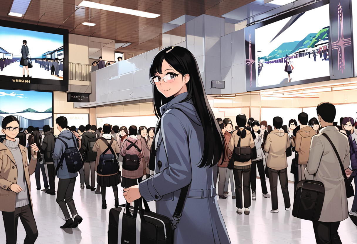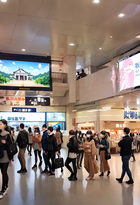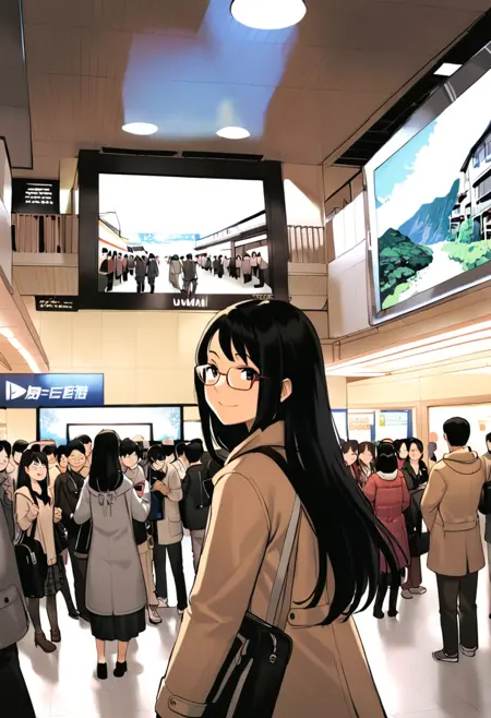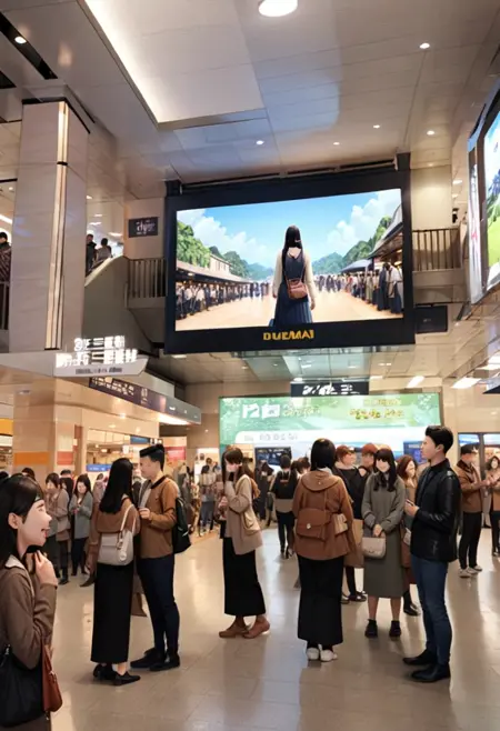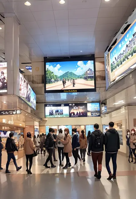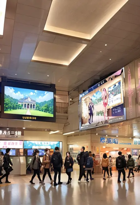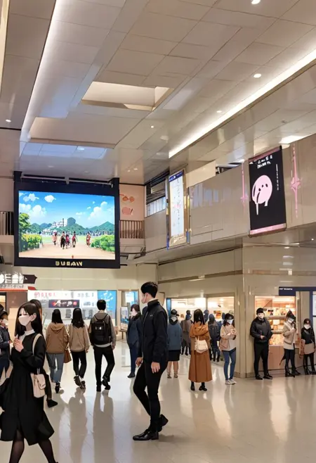 これは、日本の大阪・阪急梅田駅にある有名な待ち合わせ場所である大型サイネージモニター「BIGMAN」の前の風景をもしかすると描くことができるかもしれないLoRAです。