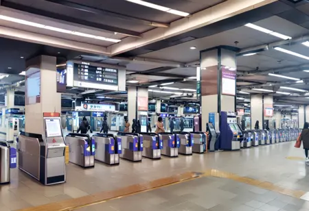 umeda3F, automatic ticket gate, scenery, indoors, train station, real world location, ceiling light, tile floor, tiles, ceiling