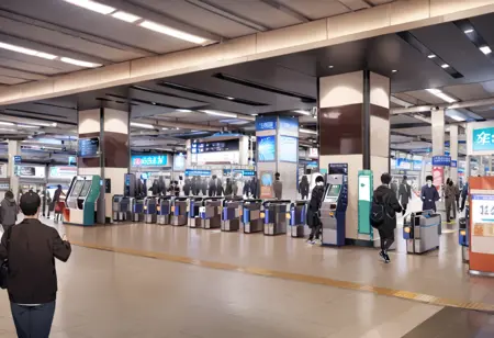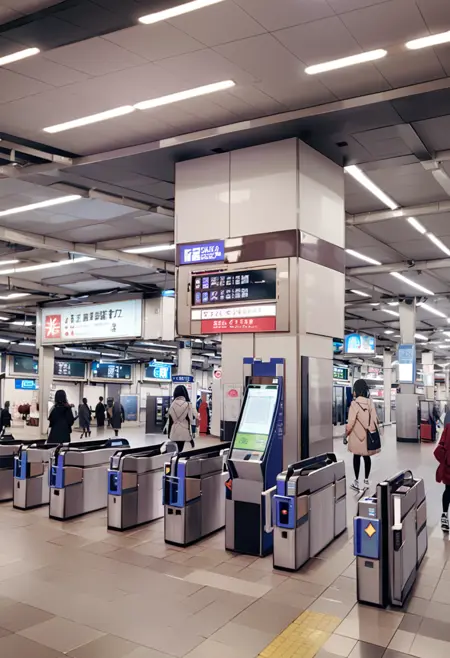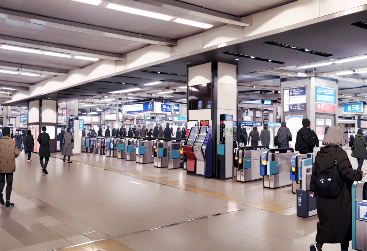 これは、大阪の阪急梅田駅3F改札口の風景っぽいイラストがもしかすると描けるかもしれないLoRAです。