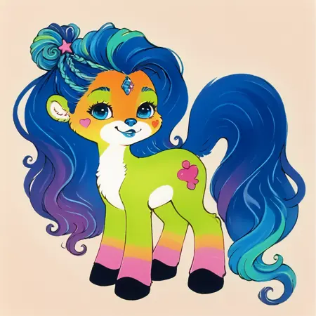 Version 1 is a merge of my Care Bears Lora, /model/396604/classic-care-bears-pony and