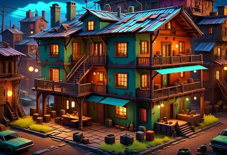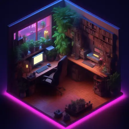 Ultra Neon Midjourney Isometric Buildings SDXL