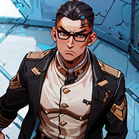 "1boy, mature male, (chamber (valorant):0.85), glasses, lora:CHMB:1," 並びに EasyNegative および BadHandv4 または画像内の代替ネガティブプロンプトを併用してください。