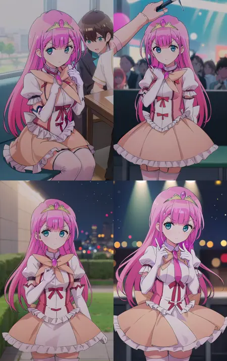 magical girl, elbow gloves, white gloves, puffy short sleeves, skirt, frills, white thighhighs, necktie,
