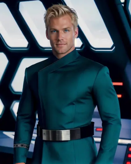 _스타워즈: 라스트 제다이_의 청록색 파이스트 오더 장교 복장을 생성합니다. 768px 해상도에서 8장의 이미지를 사용하여 400스탭 훈련되었습니다. 남성 및 여성 이미지로 훈련되었습니다. 키워드는 tealfouniform입니다. 훈련에 사용된 다른 단어: male fit | female fit, 색깔 청록색 터닉, 칼라 있음, 긴 소매, 왼쪽 아래 소매에 계급 리본, 단순한 은색 버클이 있는 가죽 벨트, 조드푸르 바지, 검은 부츠. 이 모델은 복장만을 포함한 이미지로 훈련되었으며, 얼굴은 포함되지 않았으므로 캐릭터의 설명을 추가하세요.