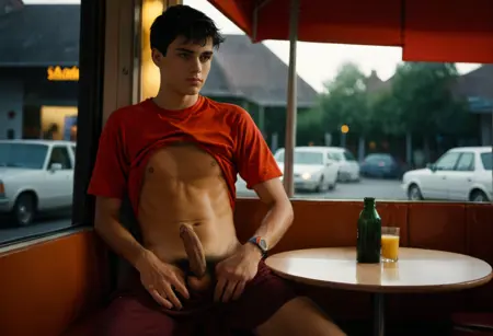 "noshirtxl" - 하의는 입고 있으나 셔츠는 입지 않은 채 음경이 보이는 젊은 남성