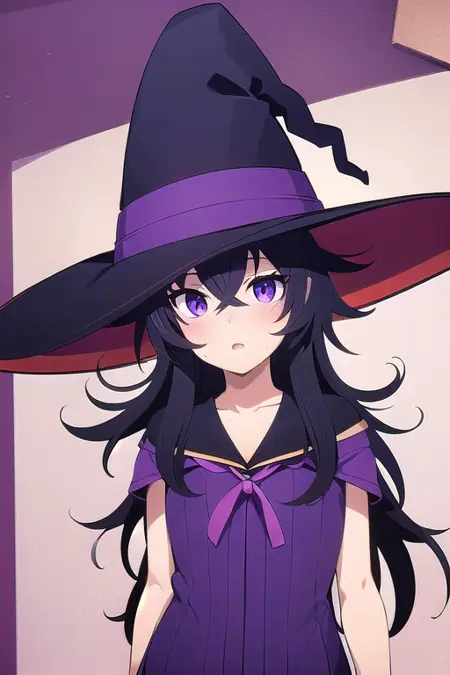 berano,Purple hair, witch hat, purple eyes, purple eyes