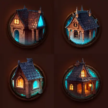 Every style should start with icon of or icon portrait of, but every style also should have different ending prompt. But you may freely combine elements of this styles by mixing prompt like round frame with glow color and background color.