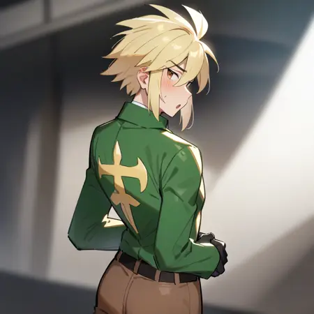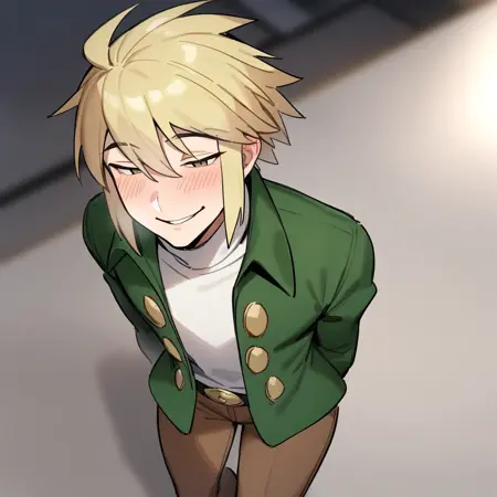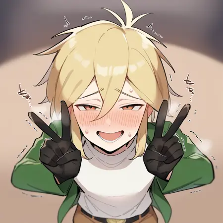1boy, male focus, sidelocks, blonde hair, brown eyes