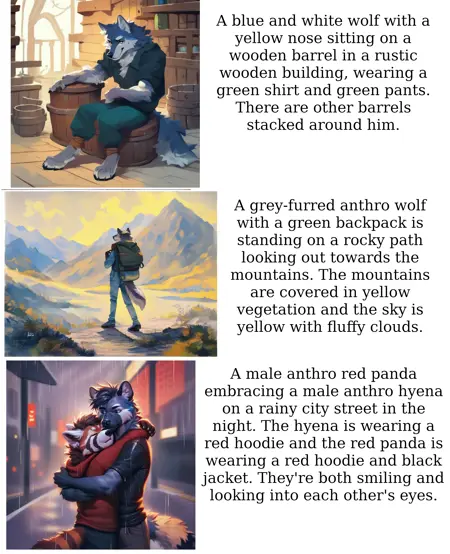 생성된 캡션의 품질은 매우 다양하며, 여러 캐릭터 간의 상호작용에 대해서는 특히 부족합니다. 필요하다면 --outfile 인수를 사용하여 캡션을 jsonl 파일로 출력할 수도 있습니다. 또한 간단한 미세 조정 스크립트도 포함했습니다.