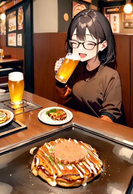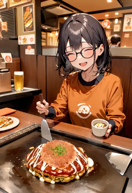 이는 특정 오코노미야키 식당의 실내 풍경과 오코노미야키를 그려낼 수 있을지도 모르는 LoRA입니다.
