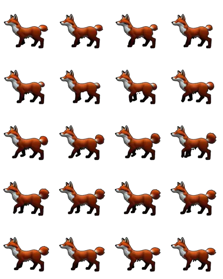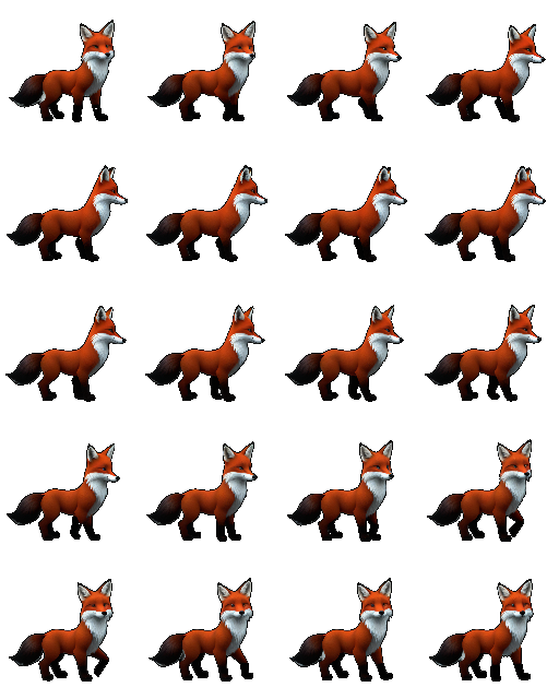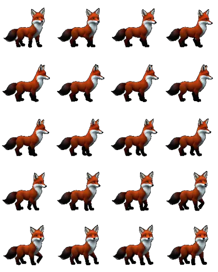 版本1.1 ~ 最终尺寸:40个精灵,5行,8列。4096x2560用于超清晰背景移除,然后缩小至1024x640作为精灵图谱,每个精灵大小为128x128。如果你希望使用少于40帧,你需要自行调整计算。