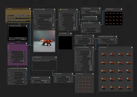 Rosebud AI版本。我使用Rosebud AI和儿子一起做游戏、做实验。我为此专门制作了一个工作流,整合了我在ComfyUI中最常用的功能。精灵图谱生成器正是为此而设,所以我专门做了一个版本,哈哈哈。一盆玫瑰。基础图像生成器并未完全连接,因为它是基础版。通常我会添加ControlNet和IP适配器,但我还是让你按自己的喜好来连接吧,哈哈哈。