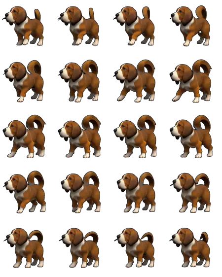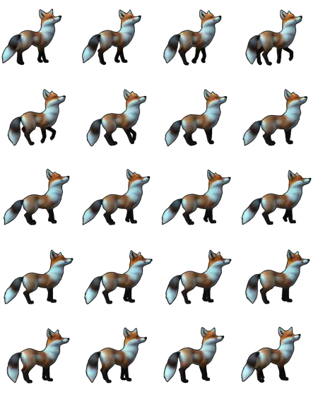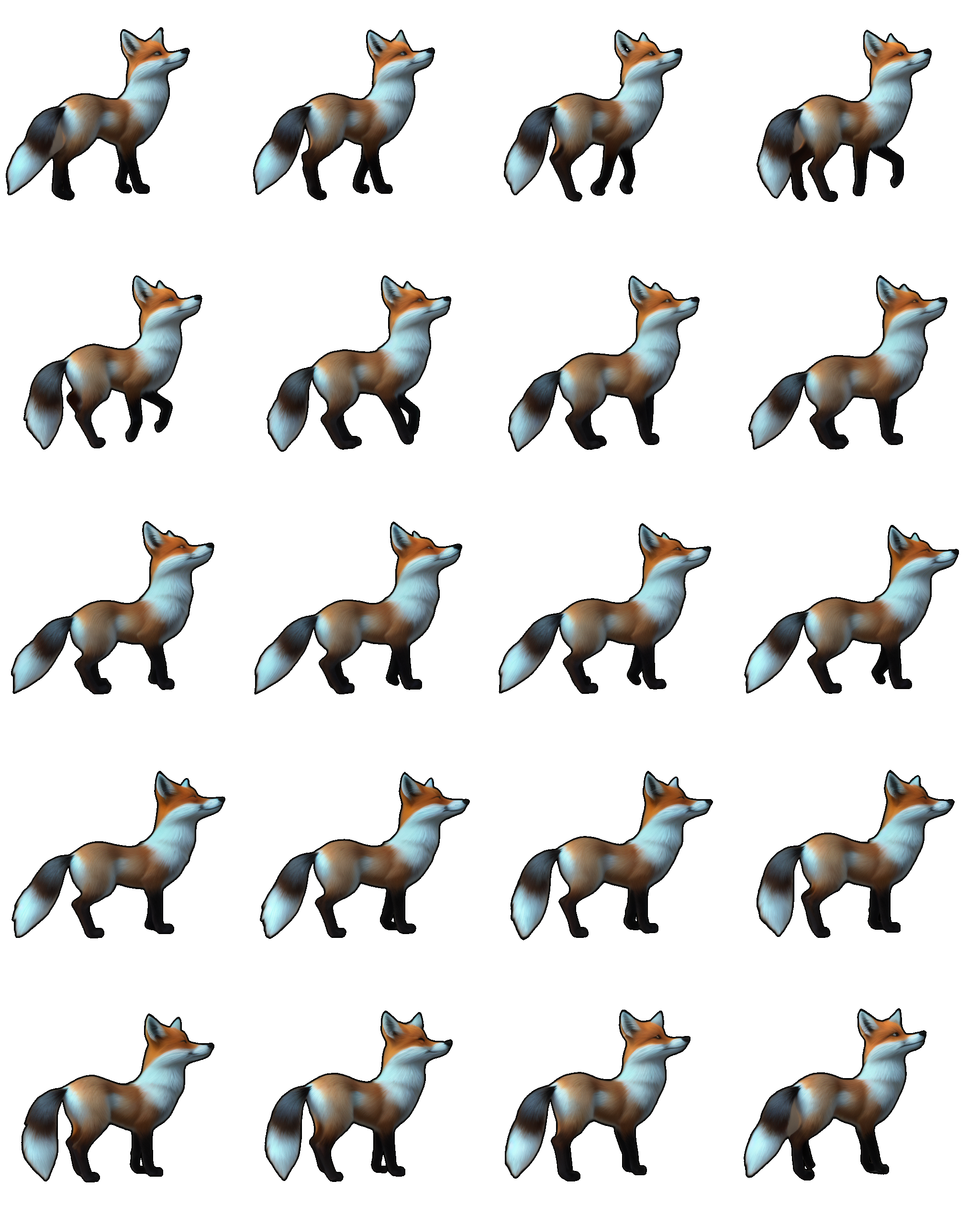 版本1.1 ~ 最终尺寸:40个精灵,5行,8列。4096x2560用于超清晰背景移除,然后缩小至1024x640作为精灵图谱,每个精灵大小为128x128。如果你希望使用少于40帧,你需要自行调整计算。