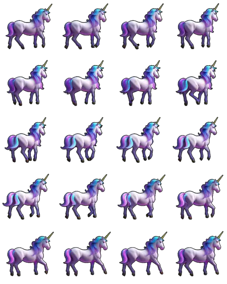 version 1.1 ~ Finalized sizes. 40 sprites, 5 rows, 8 columns. 4096x2560 for super clean background removal, then shrunk down to 1024x640 to use as a sprite sheet where each sprite is 128x128. If you wish to use less than 40 frames you will have to adjust the math.