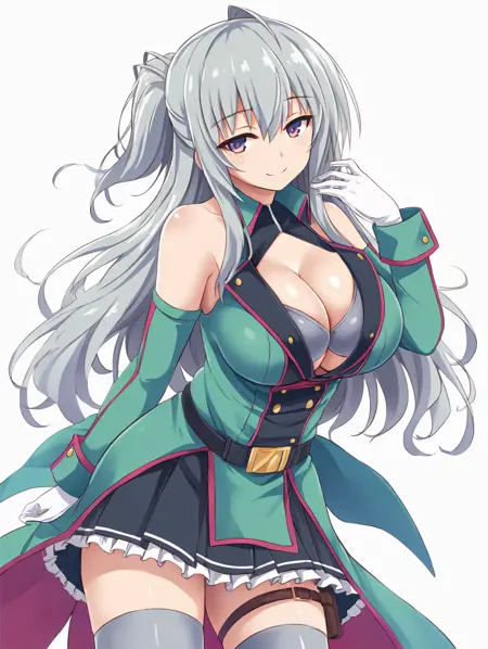 | トレーニングワード | nya lapucea, large breasts, half updoコピーしました! military uniform, bare shoulders, cleavage cutout, grey bra, green sleeves, detached sleeves, white gloves, belt, pleated skirt, frilled skirt, grey thighhighs, zettai ryouiki, thigh strap, knee boots, white footwearコピーしました! |
