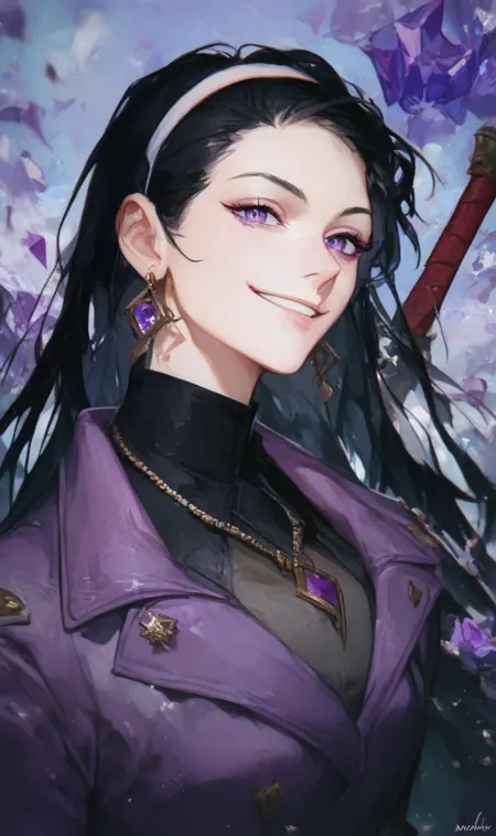 jewelry, hairband, earrings, bodysuit, purple jacket