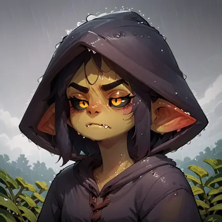 它应该能生成一个一致的哥布林女孩形象,具有黑色巩膜、黄色瞳孔、小尖牙以及刘海修饰面部的特征。(除非这些特征缺失,否则无需额外提示。)