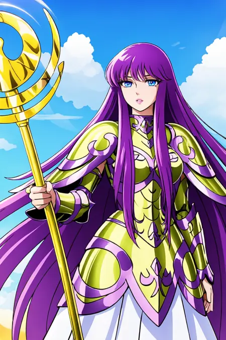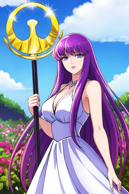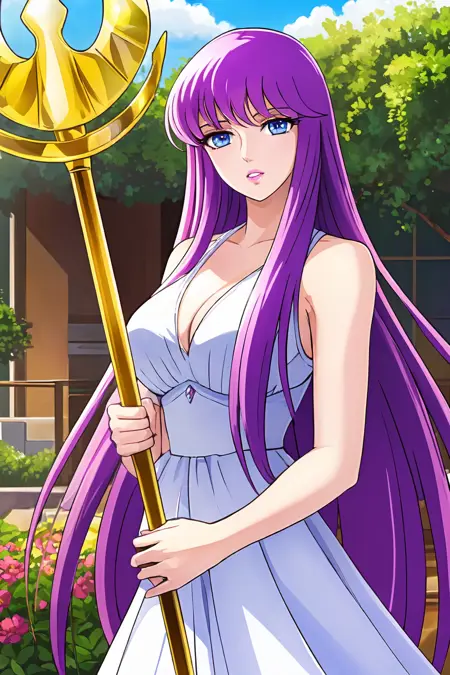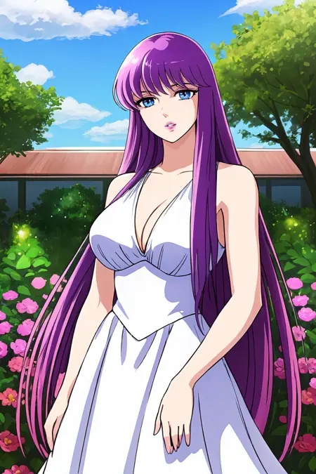 saori, saori_sleeveless_white_dress, athenacloth_armor, saori_accessories