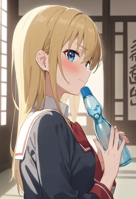 仅靠提示词本身也能生成蓝色容器,但明显像是运动饮料的塑料瓶,因此使用LoRA进行修正。