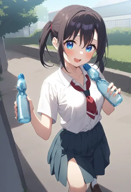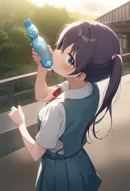 원래 프롬프트만으로도 파란색 용기나 나오지만, 명백히 스포츠 음료가 담긴 플라스틱 병처럼 보이기 때문에 LoRA를 사용해 교정합니다.