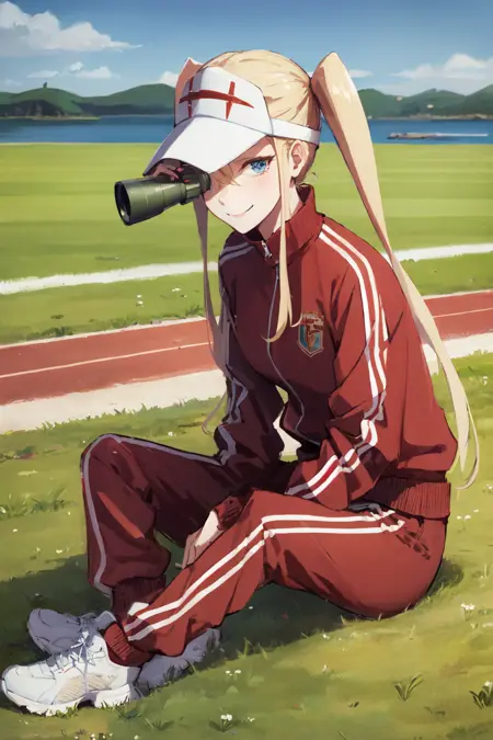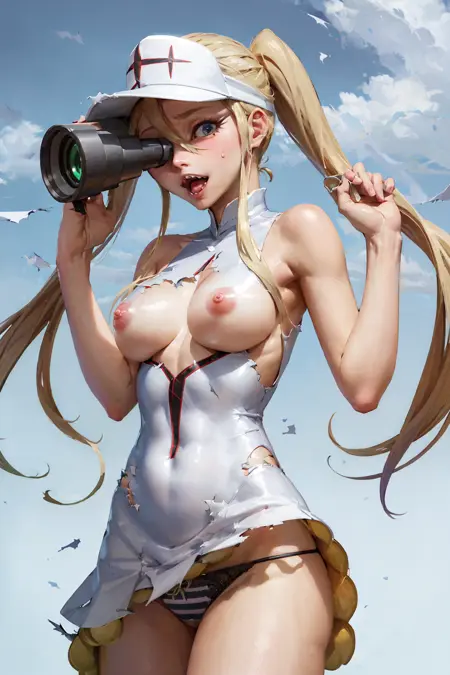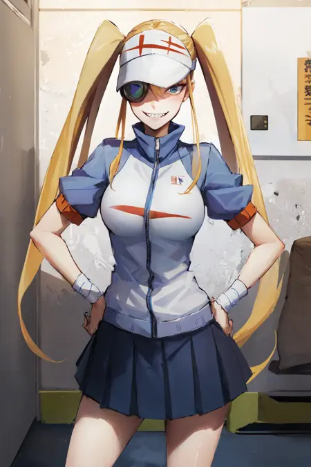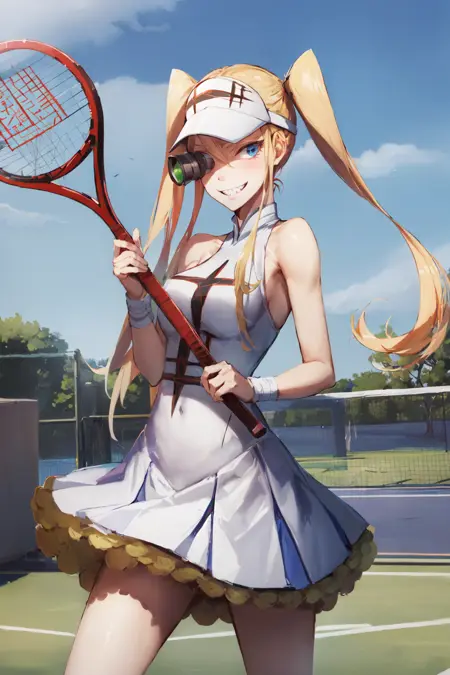 Default Outfit: visor cap, scope, tennis uniform, dress