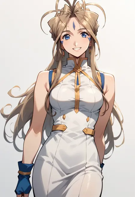 벨란다티의 얼굴 무늬와 나머지 얼굴 특징은 모두 "Belldandy" 태그에 포함되어 있으므로 추가 설명이 필요하지 않습니다. 이 태그 위에 추가로 설명을 덧붙이면 모양이나 색상이 왜곡될 수 있습니다. 그녀의 옷은 물론 포함되어 있지 않습니다. 저는 모델을 단지 그녀의 공식 여신 복장만 생성하도록 학습시킬 수도 있었지만, 다른 옷을 생성할 때 매우 제한적이라고 느꼈습니다.