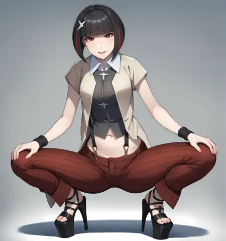 默认提示:棕色眼睛,鲍伯头,双色头发,红发,看向观众,齐刘海,发饰,黑发。