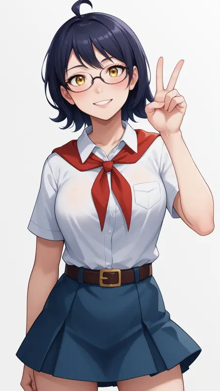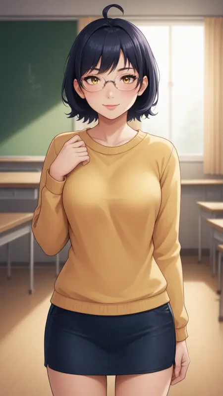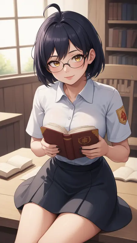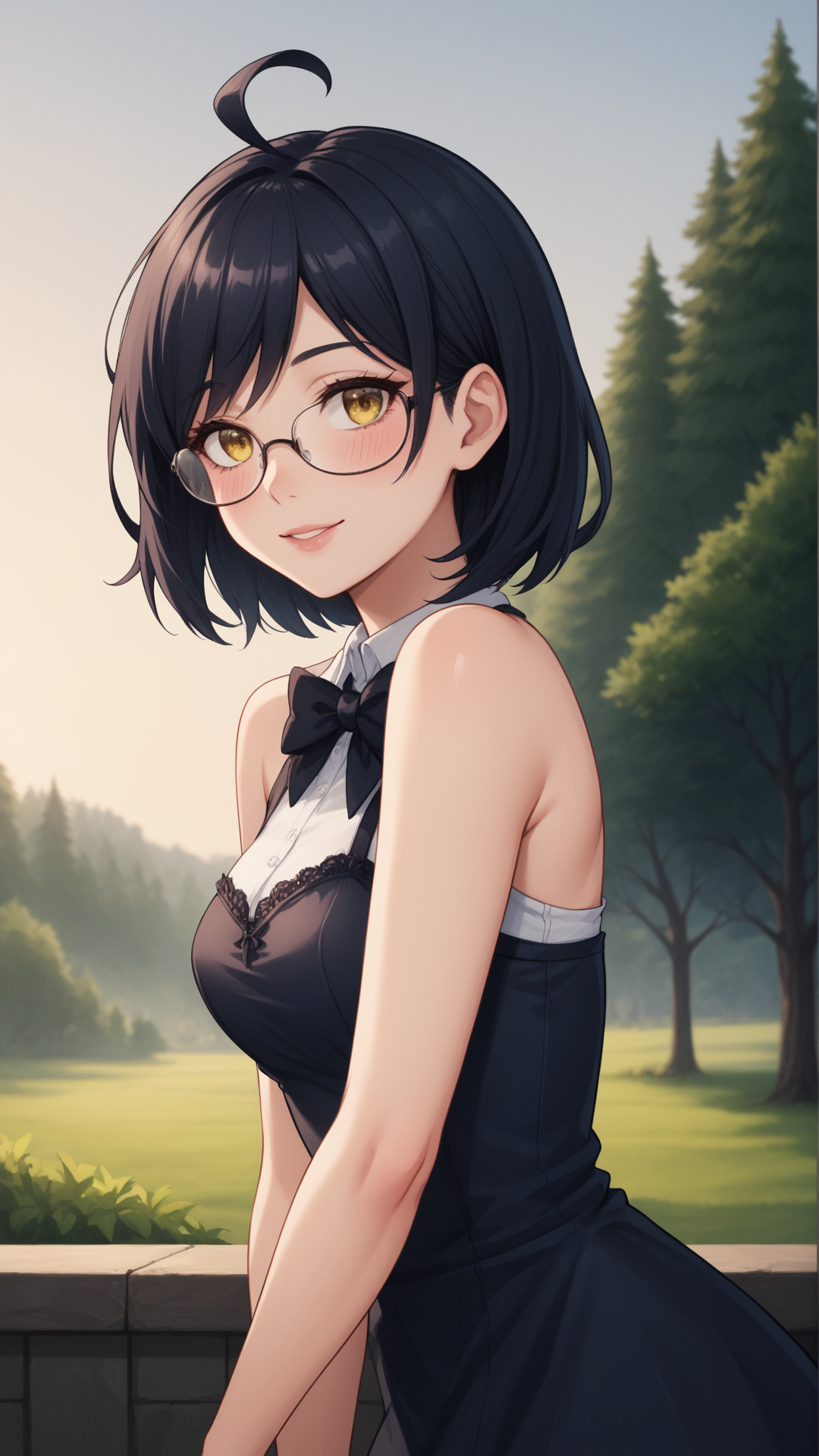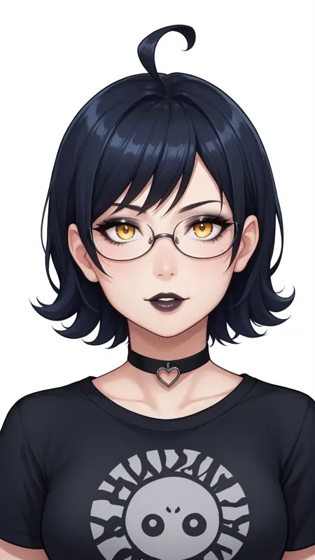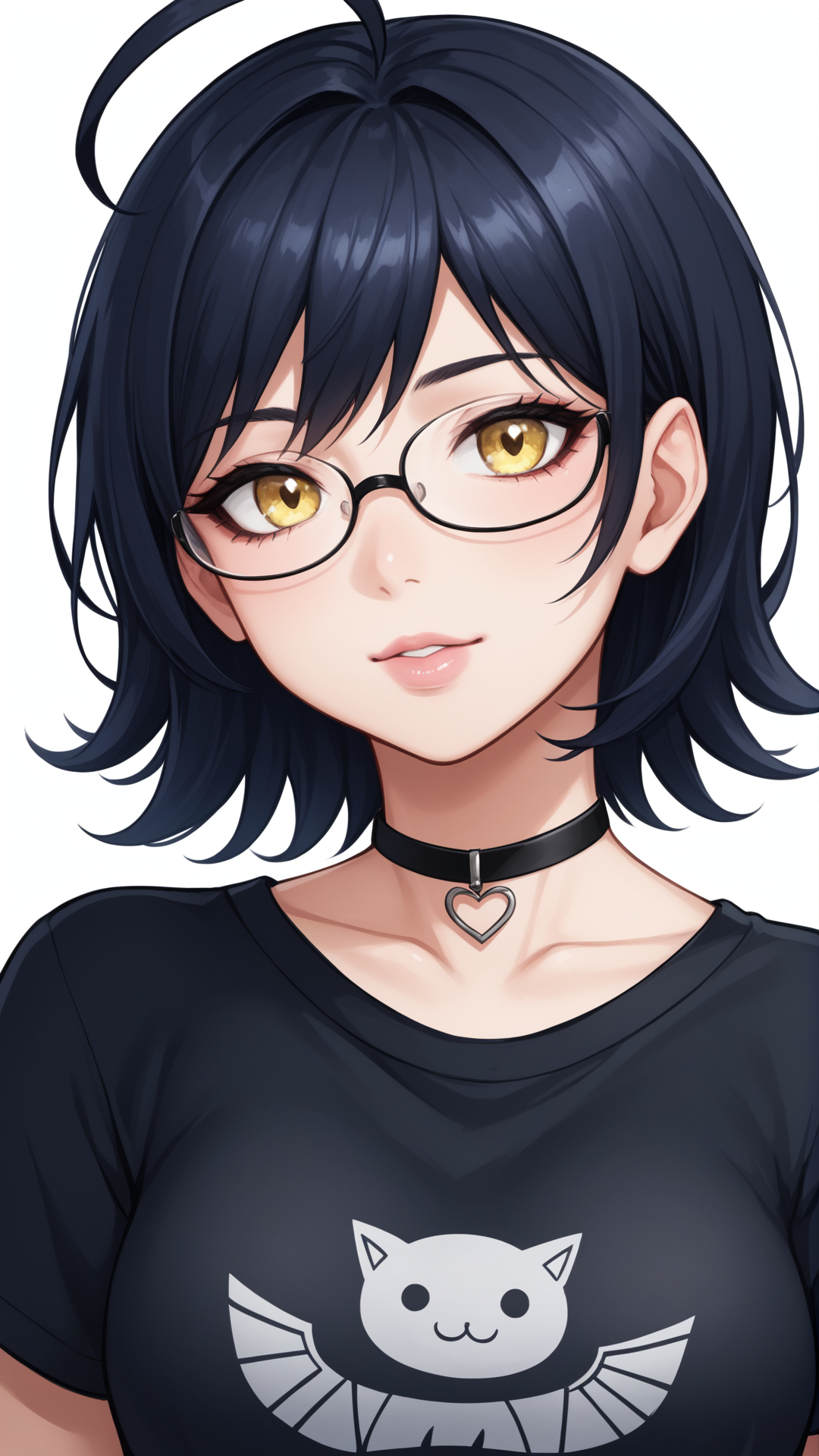zhenya,短发,黄眼睛,呆毛,眼镜,黑发,1girl,单独,右侧刘海,