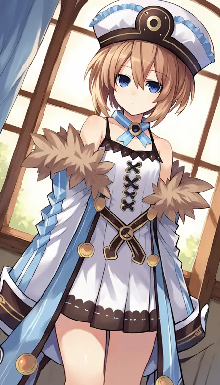 外观: Blanc \(neptunia)\,棕色头发,蓝色眼睛,短发,平坦胸部,小女孩