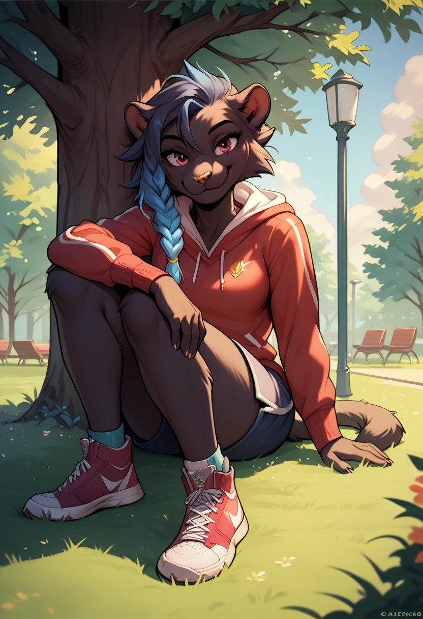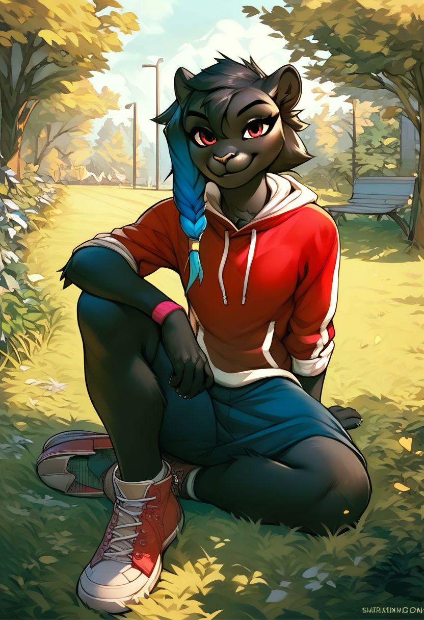 Lovers: clairenLovers, furry, female, feline, red eyes, black fur, black hair, blue braid