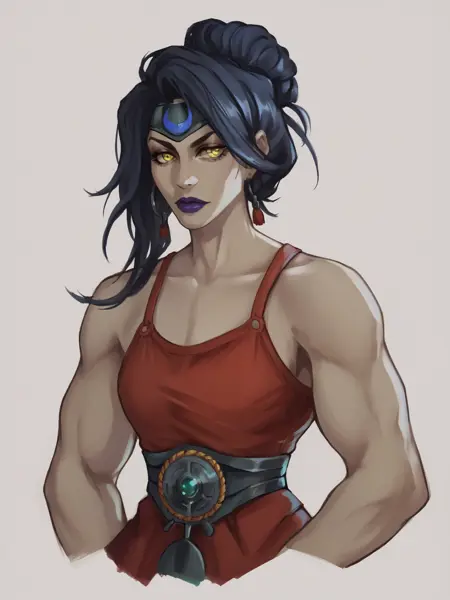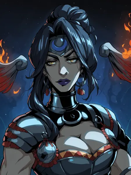 If you want to get the Hades art style I recommend using the tags "cel shading, linear hatching" or a style lora.