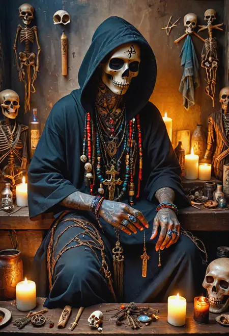 このモデルは、ヴードゥーファッションとシンボルの概念に基づいてトレーニングされています。主な焦点はニューオーリンズのヴードゥーで、ハイチのヴードゥー、アフリカのヴードゥー、および一部の魔術やウィッカの要素が含まれています。このモデルは、強度が.3-.9のときに最もよく動作します。私は個人的にeulerをサンプラーとして使用していますが、他のサンプラーも動作します。他のLoRaと組み合わせると、ユニークで楽しい画像を作成できます。