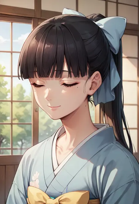 • 버전 2.0 이하: miyo saimori, 검은 머리카락, 보라-분홍색 눈