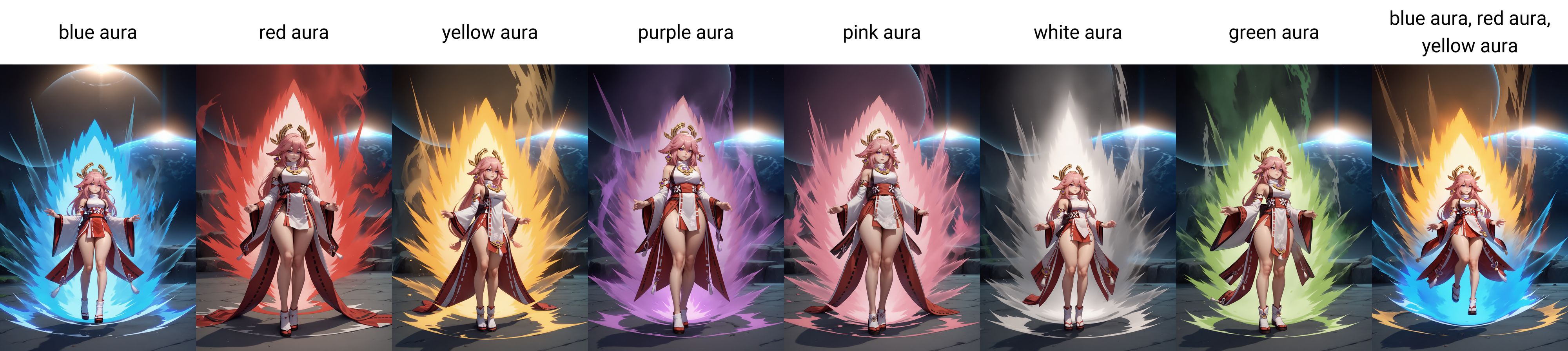 权重范围可从0.6到1,我推荐使用1。适用于几乎所有角色、风格和概念,部分颜色可组合使用。