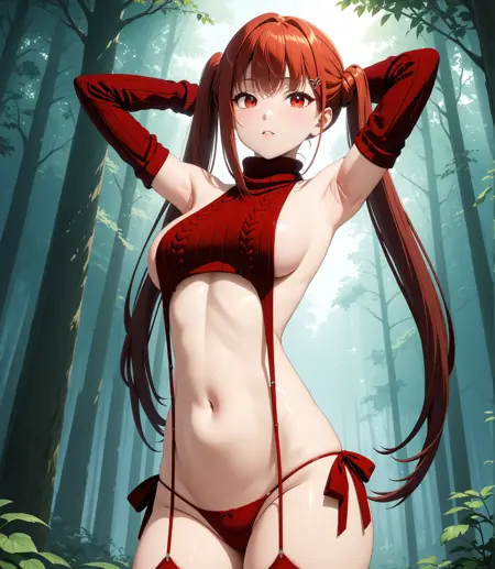 过膝袜,裸露肩膀,内衣,内裤,大腿,可拆卸袖子,毛衣,侧乳,高领,高腰,暴露衣物,侧系内裤,条纹毛衣,梗服饰,高领毛衣,高腰内裤,处女杀手毛衣,条纹袖子