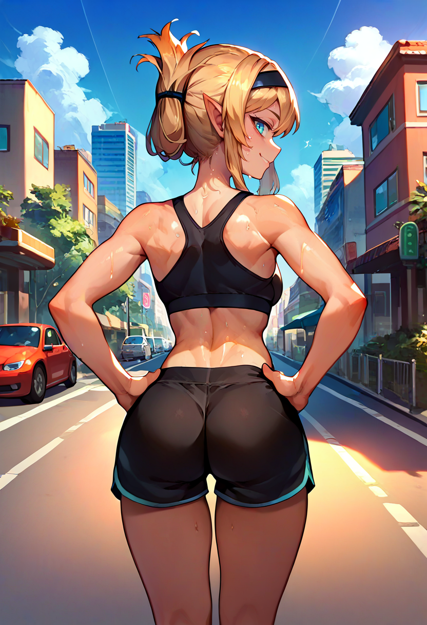 触发词 + 外貌: thalia, 折叠马尾, 尖耳朵