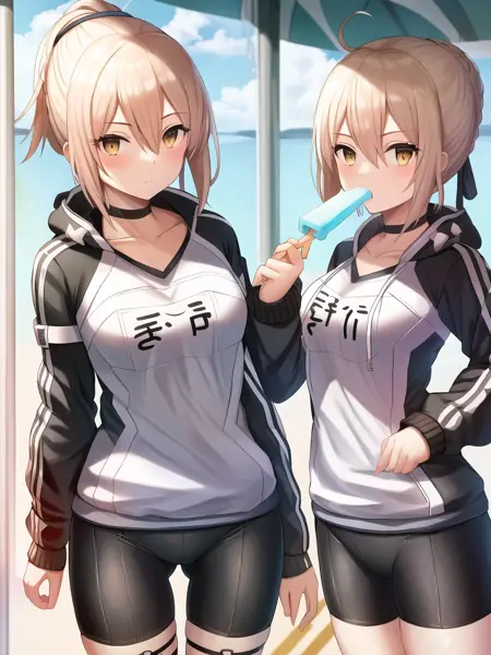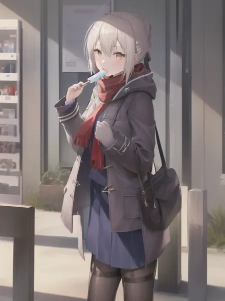 1段階目:MHXA, プレーダーのマフラー, コート, 学園服。データセットにクラシック衣装タグも併記していますが、うまく機能しません。試してみるのも可