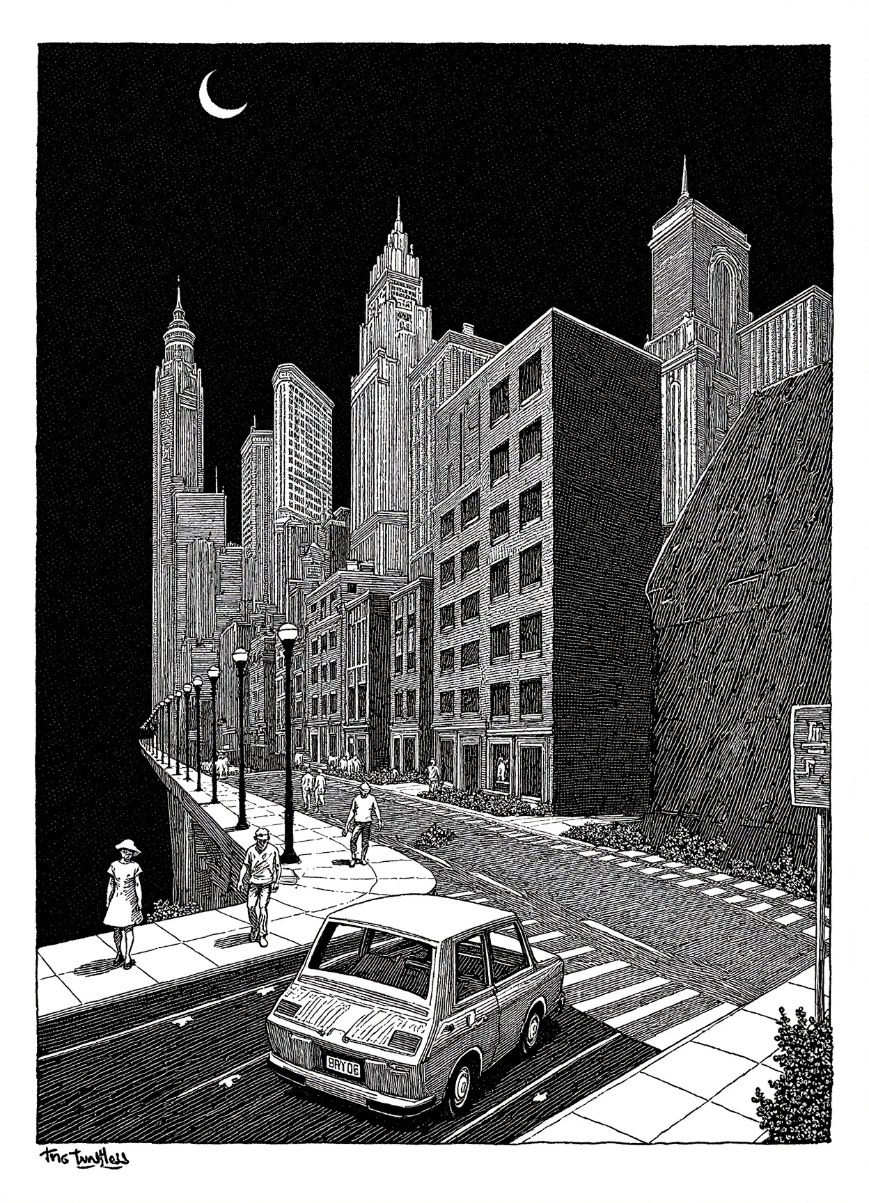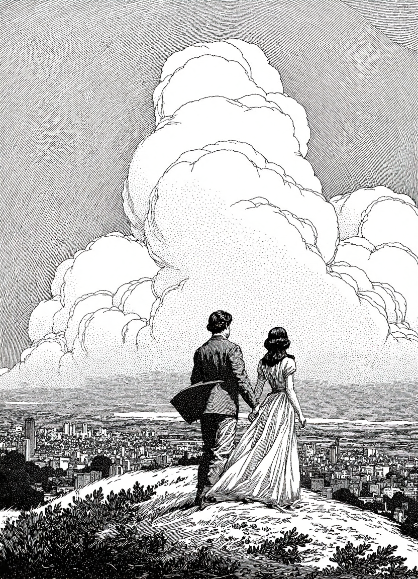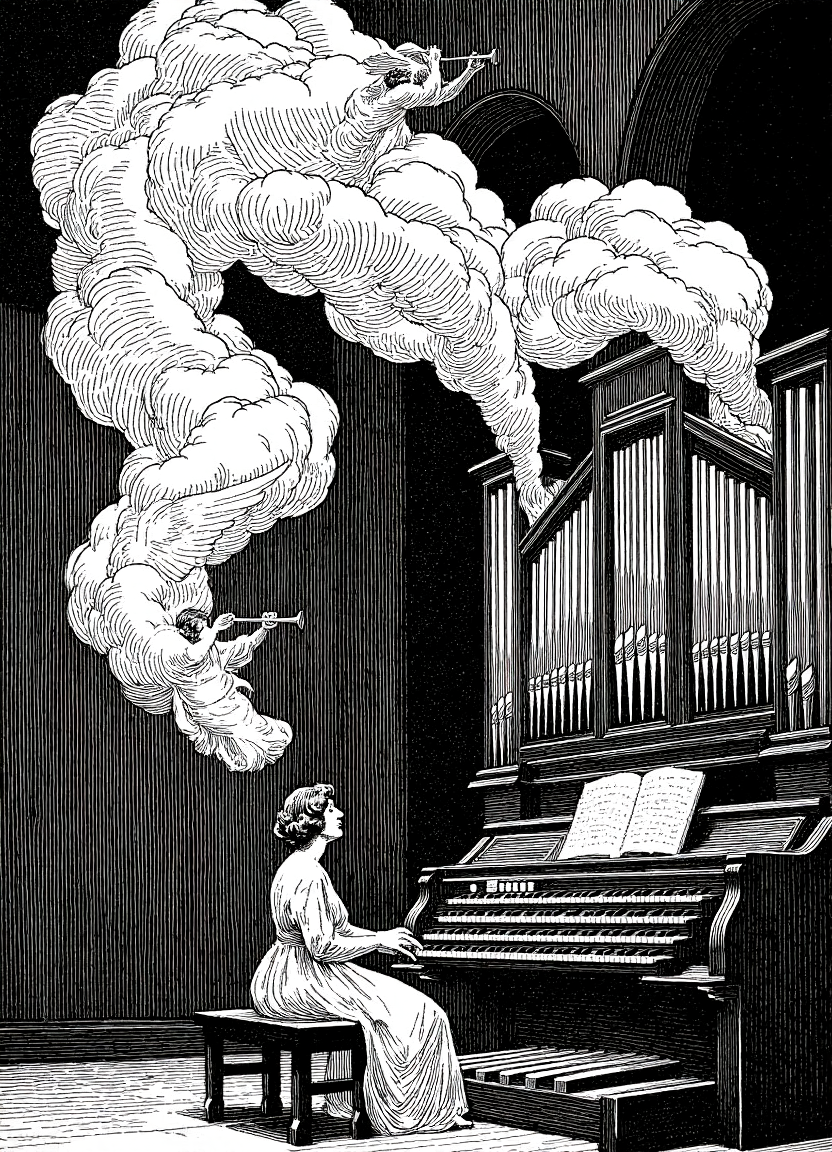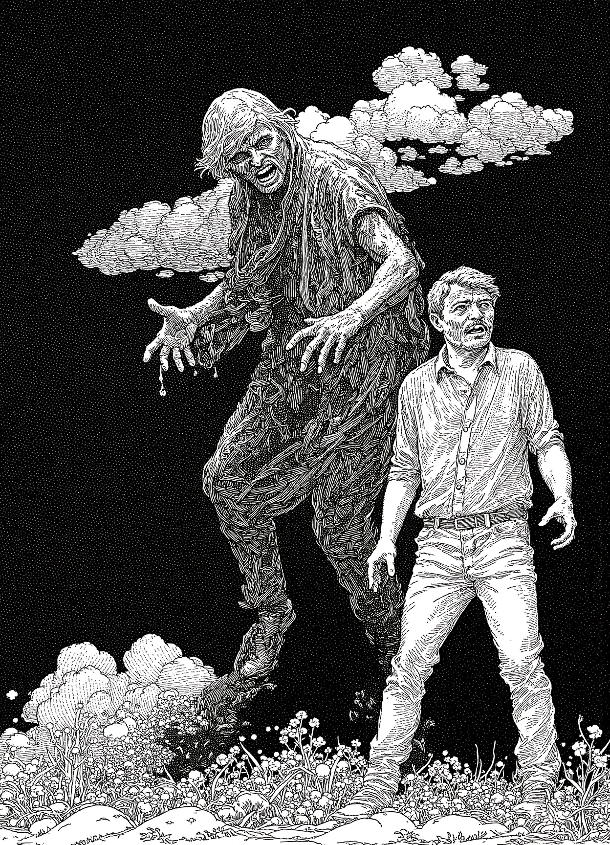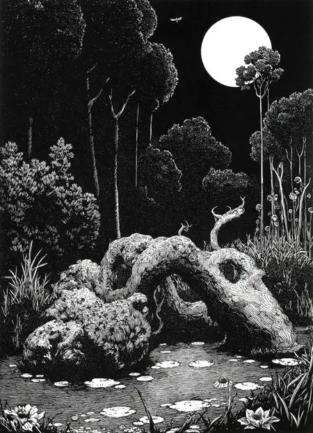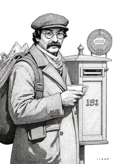 使用与之前相同的训练数据集,但仅通过触发短语 `detailed pen-and-ink illustration by franklin booth` 进行训练。令我惊讶的是,它似乎足够灵活。他的风格非常精细,因此最好能找到一种方式尽可能放大渲染效果。