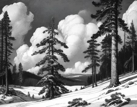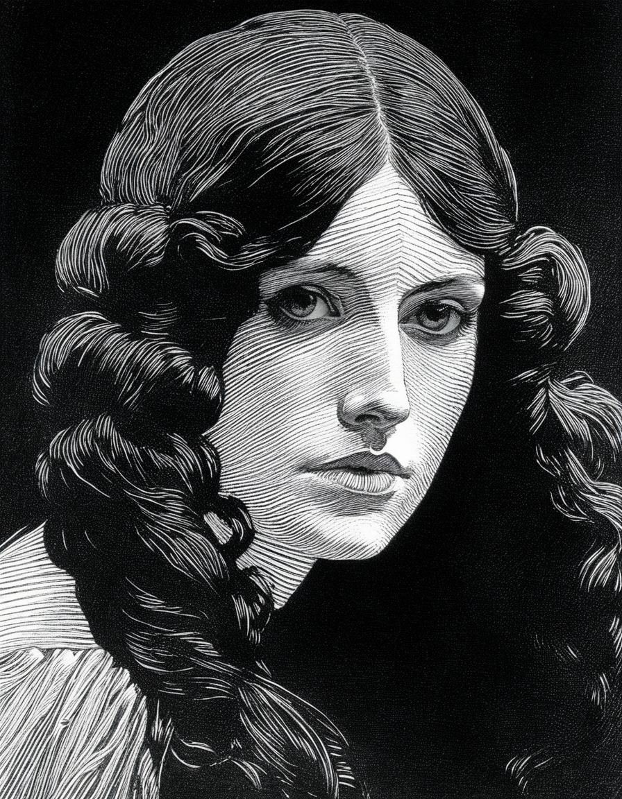 Same dataset as before, but trained only with a trigger phrase, `detailed pen-and-ink illustration by franklin booth`. To my surprise, it seems flexible enough. His style is detailed, so it helps to find a way to render as large as possible.